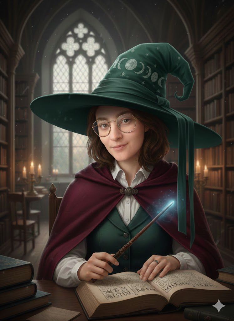 V našem týmu mě někdy s úsměvem potkáte i jako profesorku Sophii McPontis - "ředitelku Institutu pro hojení duše a mosty mezi světy". ✨ (Konzultace u šálku máslového ležáku dle předchozí domluvy možná...)