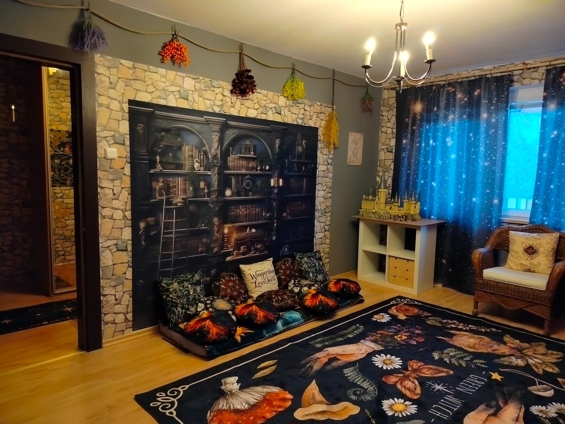 Interiér nese atmosféru starobylého místa příběhů a objevování, kde mají své místo odvaha, přátelství, vnitřní síla i hledání vlastní cesty. Tyto motivy vnímáme jako důležité nejen pro děti, ale i pro dospělé, kteří se v každodenním životě setkávají s tlakem, nejistotou nebo potřebou zastavit se a znovu se opřít o své vnitřní zdroje.